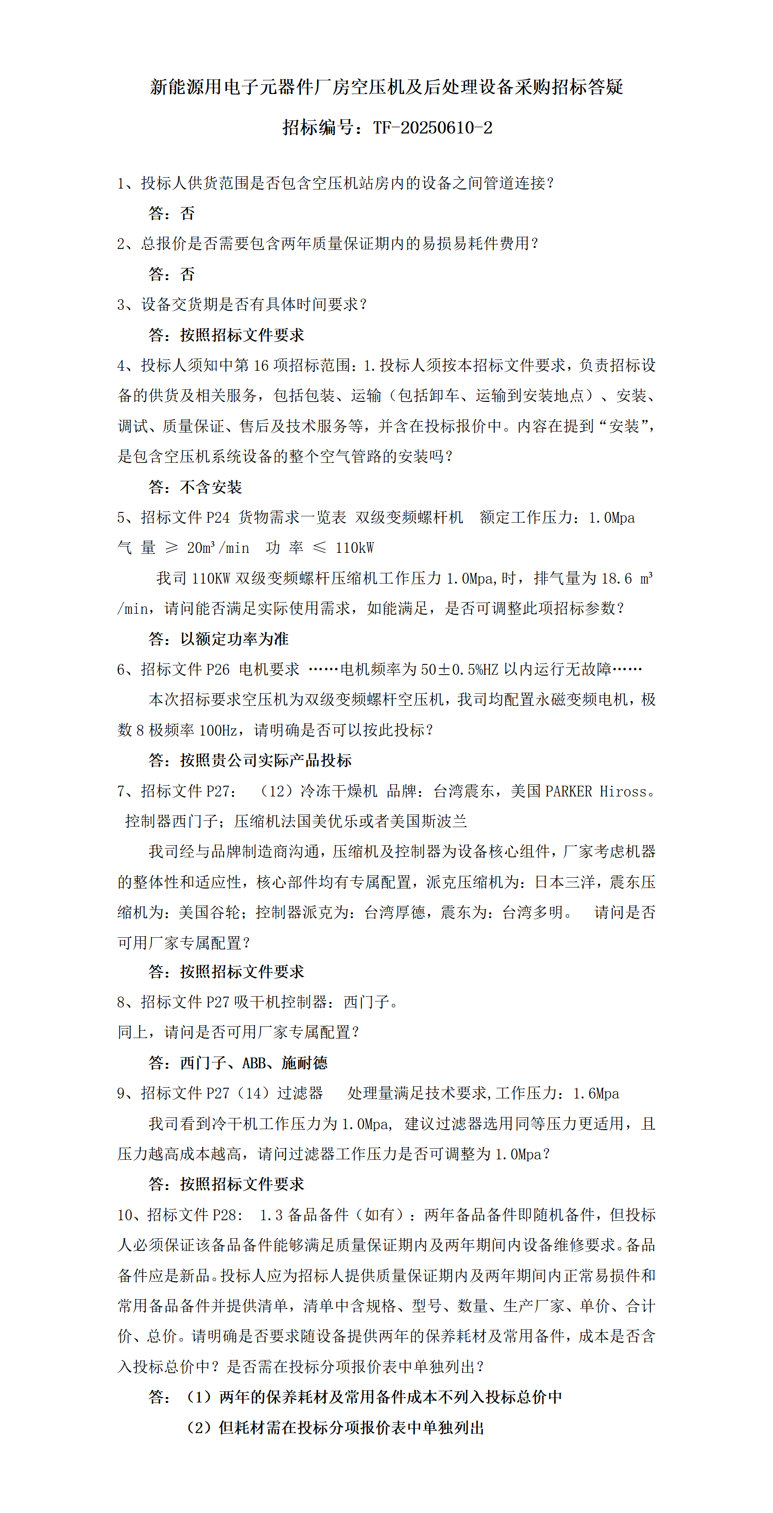 空壓機(jī)及后處招標(biāo)答疑(招標(biāo)編號(hào):TF-20250610-2)_01