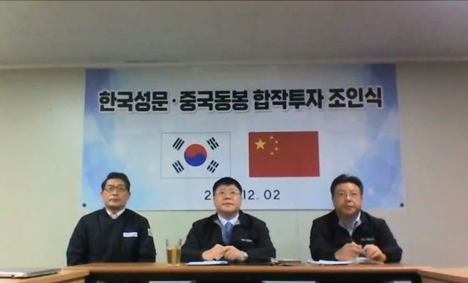 12月2日上午,公司與韓國(guó)成門公司以視頻會(huì)議形式舉行合資合作簽約儀式,雙方投資設(shè)立合資公司,實(shí)施新能源汽車濾波用薄膜電容器項(xiàng)目。公司董事長(zhǎng)黨委書記、董事長(zhǎng)黃明強(qiáng)與韓國(guó)成門公司代表理事辛浚燮分別代表雙方簽署合資合作協(xié)議。公司總經(jīng)理鮑俊華、副總經(jīng)理、財(cái)務(wù)總監(jiān)郭傳紅、董事會(huì)秘書李駿,韓國(guó)成門公司理事辛承燮、金鐘洛等分別在各自會(huì)場(chǎng)參加簽約儀式。