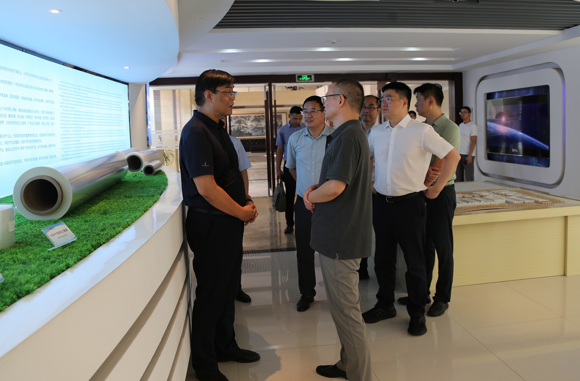 吳強深入宣講黨的二十屆三中全會精神和習近平總書記關于科技創(chuàng)新的重要論述,并參觀了企業(yè)展廳和銅愛公司生產(chǎn)車間。公司負責人向吳強一行介紹了企業(yè)生產(chǎn)經(jīng)營、項目建設、技術創(chuàng)新、人才培養(yǎng)等工作情況,并重點匯報了國家級博士后工作站、省重點實驗室等創(chuàng)新平臺建設、產(chǎn)業(yè)鏈協(xié)同創(chuàng)新項目推進、新能源汽車電容器和復合集流體用基膜等重點新產(chǎn)品研發(fā)、推廣的進展和成效。